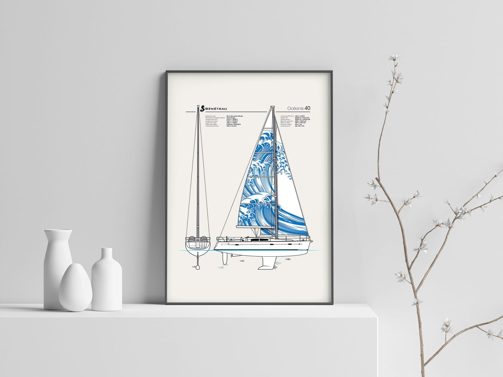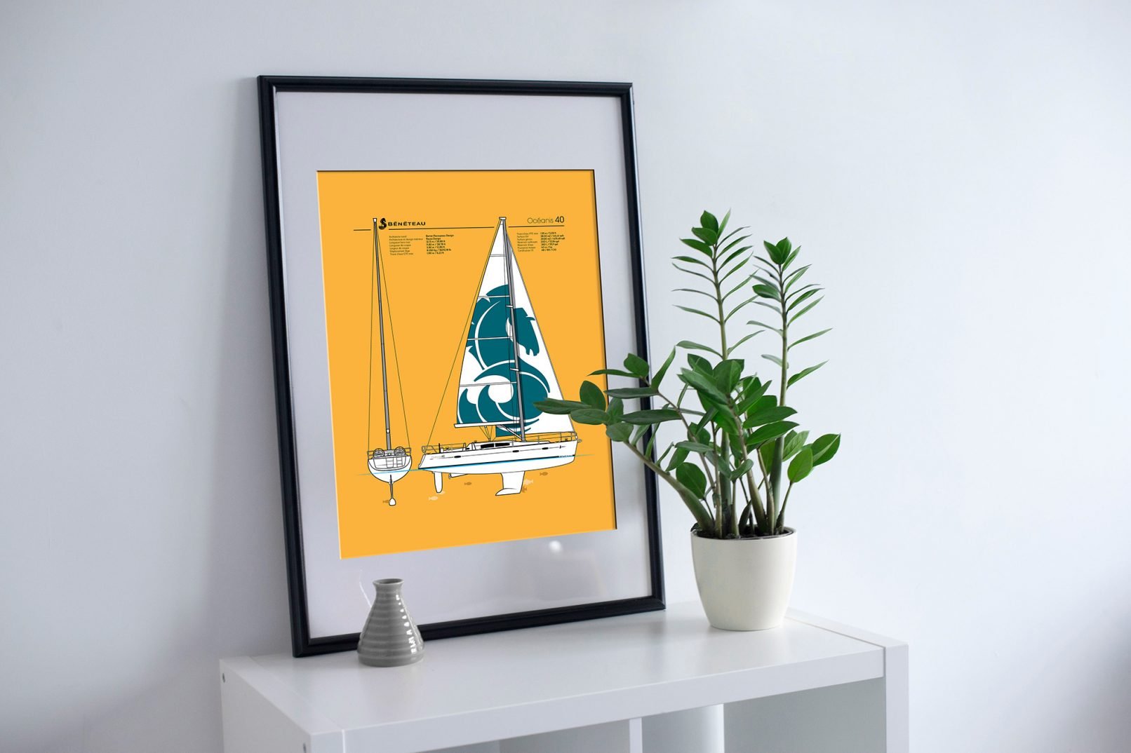 Commissioned illustration by a private client of the Beneteau Oceanis 40, a 40 feet long high end cruising yacht by Nauta design. Why not have it on your wall as well?